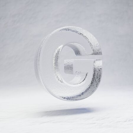Ice letter G uppercase. 3D rendered alphabet on white snow background. Best for winter sports banners, cocktail bars, ice exhibition advertising.