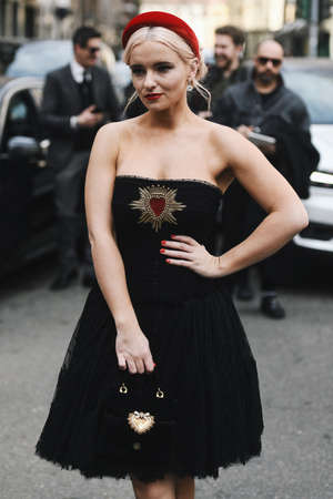 Milan, Italy - February 24, 2019: Street style – Woman wearing a Dolce Gabbana purse before a fashion show during Milan Fashion Week - MFWFW19