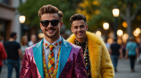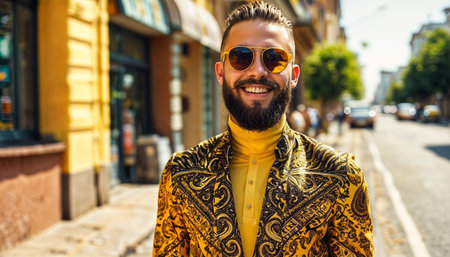 Amidst the city streets, a positive bald man in vibrant clothing is like a ray of sunshine, bringing smiles and joy to the surrounding world. AI Generative AI
