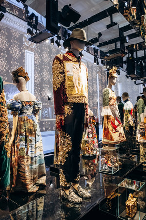 Paris, France - 23 February 2025: Dolce Gabbana exhibition at Grand Palais, gathering for the first time the unique creations of the luxury fashion house