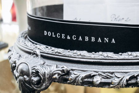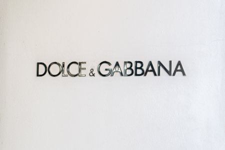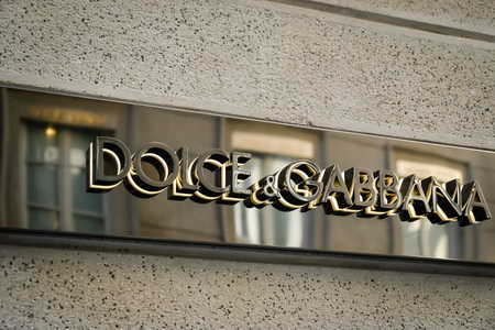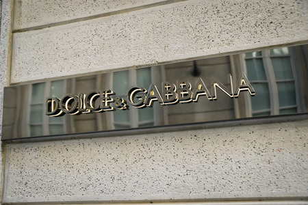 MILAN, ITALY - CIRCA NOVEMBER, 2017: close up shot of Dolce & Gabbana sign. Dolce & Gabbana is an Italian luxury fashion house.