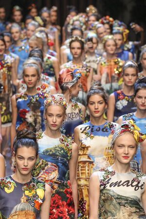 MILAN, ITALY - SEPTEMBER 27: Models walk the runway during the Dolce and Gabbana show as a part of Milan Fashion Week Spring/Summer 2016 on September 27, 2015 in Milan, Italy.