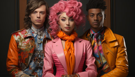 1980s 1990s style. Punk fashion as a reaction to the hippie movement of past decades and against materialistic values of the current decade. Retro, pop, hipster, neon, colorful, nineteenth