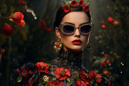 a digital painting featuring a man wearing sunglasses against an abstract background. the artwork is created in the style of hyperrealistic sculptures, reminiscent of kodak aerochrome photography. the image showcases selective focus and vibrant neon lighting. the composition is influenced by baroque-inspired sculptures and indian pop culture, resulting in a captivating depiction of street scenes with vibrant colors. ai generated