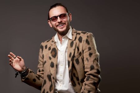 Portrait of a handsome young guy in stylish sunglasses. Generative AI