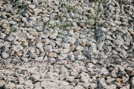 Granite stones under the grate. Pattern, background. Landslide protection.