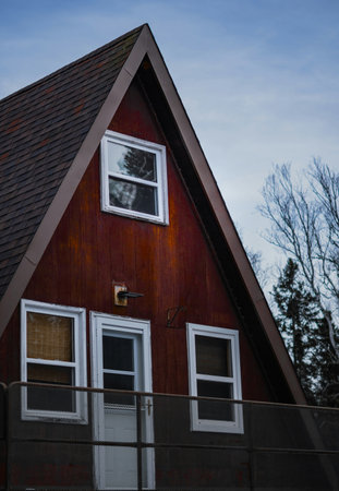 gambrel roof close-up under clear skies, created with generative ai
