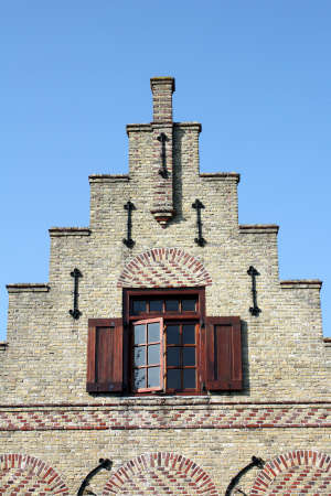 Symmetric detail shot of roof gable showing ventilation panel