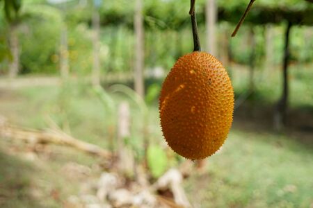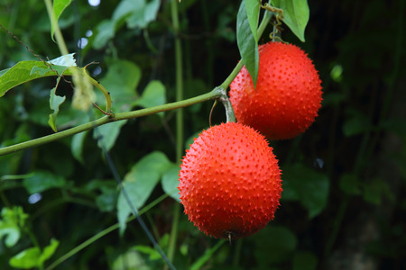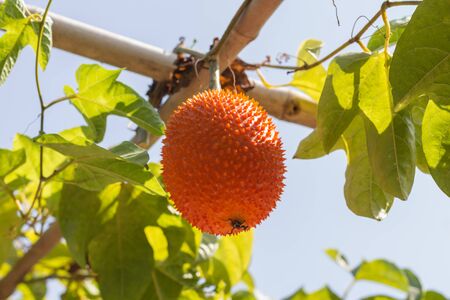 Gac fruit is ripe on the tree. Gac is high in anti-oxidants. Enhance the body immunity