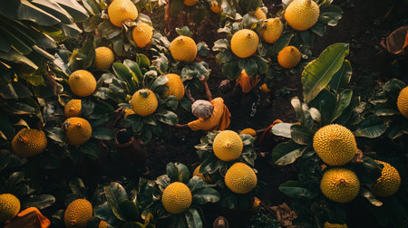 Cultivation of Jackfruit in the garden. Selective focus.