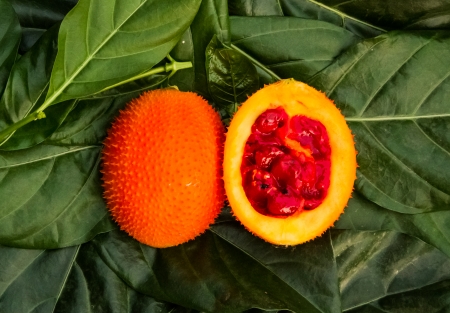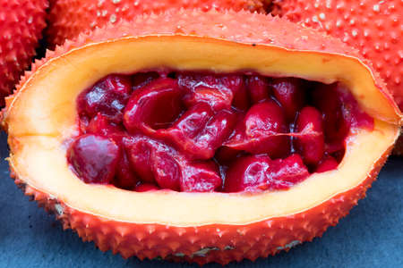 Ripe of southeast asian fruit, commonly know as Gac, Baby jackruit, Spiny bitter gourd, Sweet grourd or cochinchin gourd. Very delicious and medicinal properties
