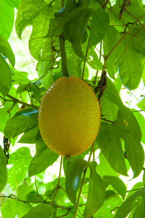 Gac fruit, Baby Jackfruit, Spiny Bitter Gourd, Sweet Grourd or Cochinchin Gourd in nature.