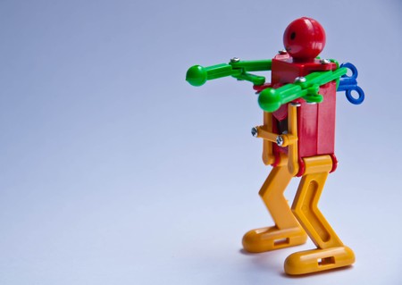 Close-up of a small toy robot. Childhood memories. Child's play.