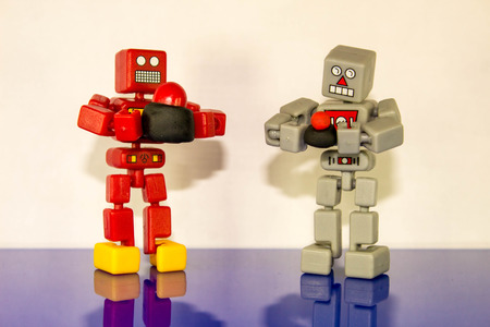 Toy robots prototypes close-up concept automation background
