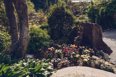 Botanical garden with colorful beautiful flowers and plants