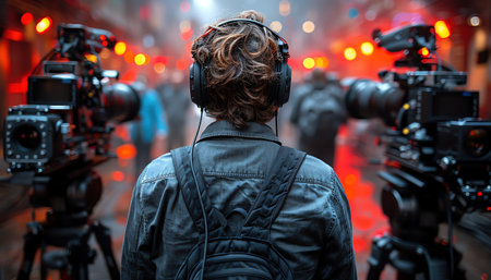 A film director giving instructions on set, showcasing expertise in the filmmaking process