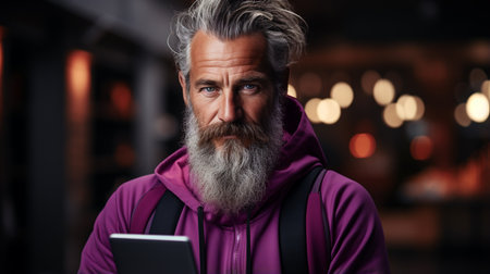 Portrait of a stylish man with a long beard and styled hair