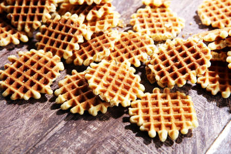 sweet waffles without packaging put together, the industrial production of wafers for public consumption