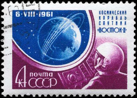 USSR - CIRCA 1961: A Stamp printed in USSR shows the Major Titov and Vostok 2, series, circa 1961
