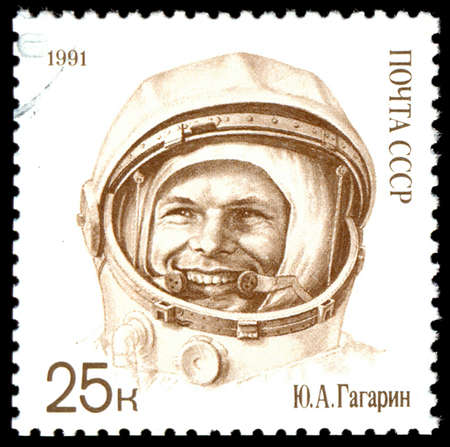 Russia - CIRCA 1991: A stamp printed in the USSR shows shows cosmonaut Yuri Gagarin, one stamp from a series, circa 1991.