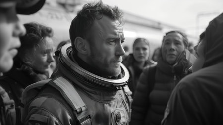 An astronaut is met on Earth after landing