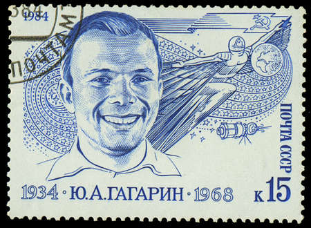 RUSSIA - CIRCA 1984 A stamp printed in USSR, shows portrait of Russian cosmonaut Yuri Gagarin, circa 1984
