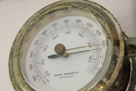 Close up of aneroid barometer with needle at 30.3 inches