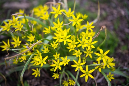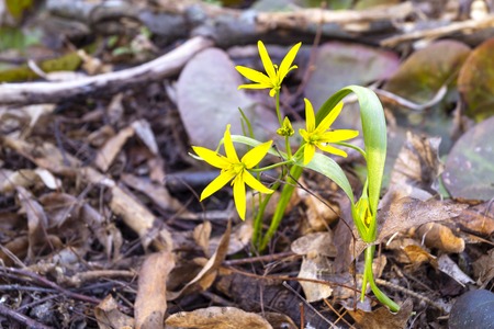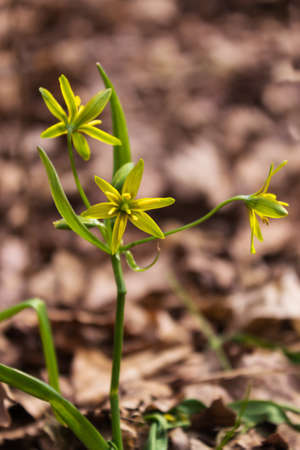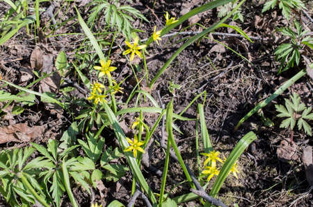 Early primroses in the spring wood: gagea, small star of Bethlehem (Gagea)