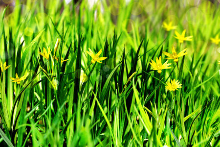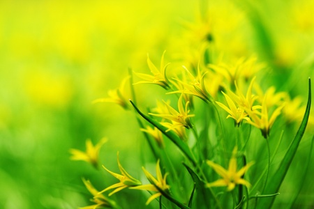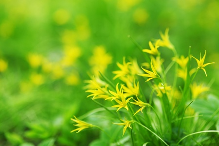 Abstract defocused background with spring flower Gagea lutea or Yellow Star-of-Bethlehem