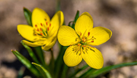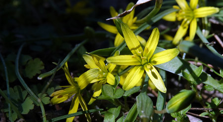 Close up of Gagea lutea (yellow star-of-Bethlehem) - spring plant with yellow flowers