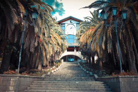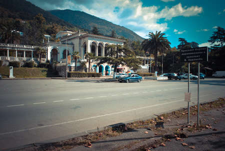Picturesque main street in Gagra, Abkhazia. Toned image