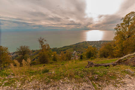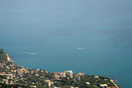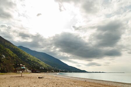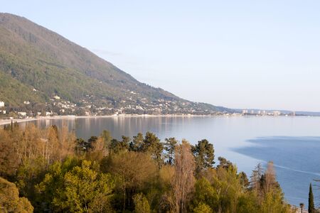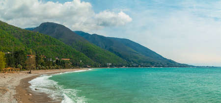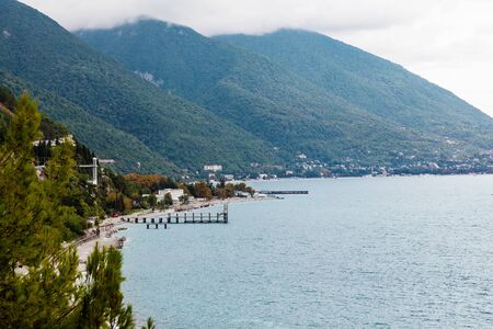 Panoramic view of the coastline, mountains and the sea in Gagra, Abkhazia