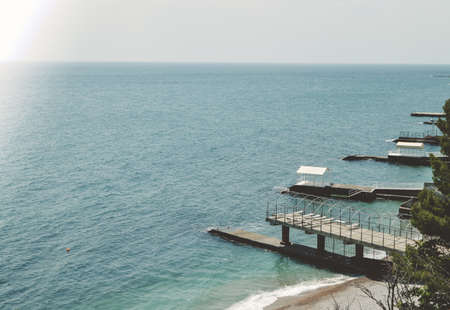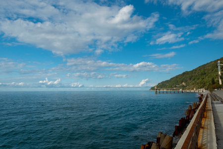Landscape with a view of the embankment near the beach. Black Sea on a sunny summer day.