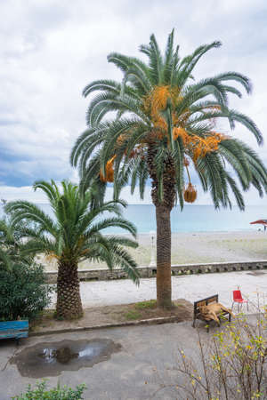 Autumn yellowing of palms in Gagra, Abkhazia.