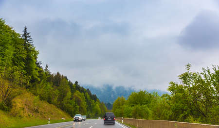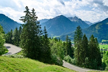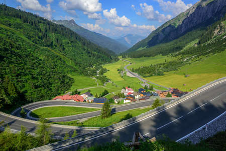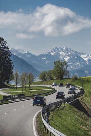Scenic austrian landscapeAlpine road, motorways. ountains of the alps. Mountain road in the background