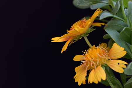 Beautiful yellow flowers on a black background. Selective focus.