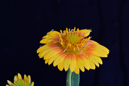 Yellow flower on a black background. Shallow depth of field.