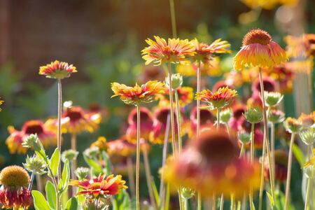 Blooming Gaillardia flowers, family asters. Flowering of chamomile Gerbera.