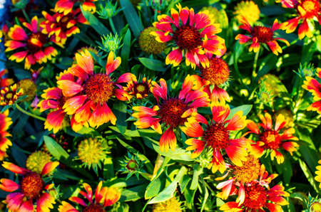 garden flower red and yellow-orange in mid-summer. High quality photo