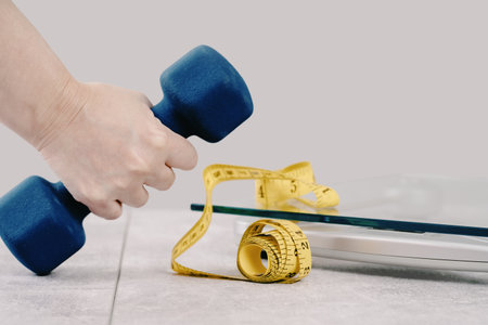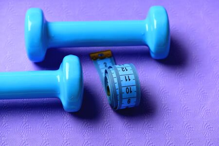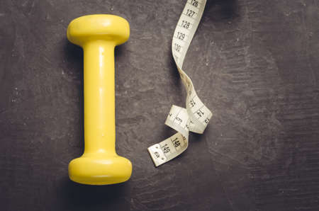 Dumbbells and measuring tape. Move toward healthy life.