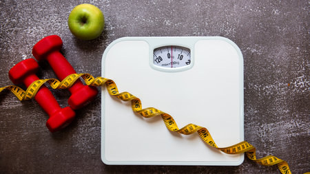 scales and measuring tape diet concept