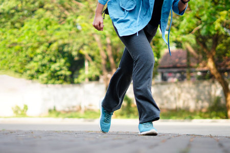 The female walking at the morning for warm up body for jogging and exercise.