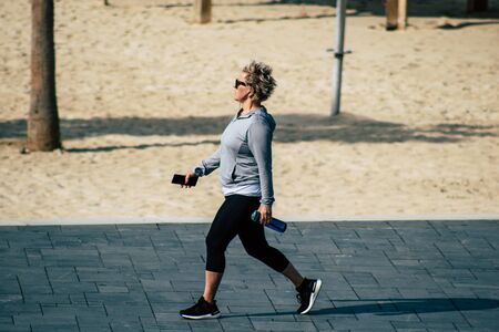 Sport concept. Woman going out for her exercise with a walk