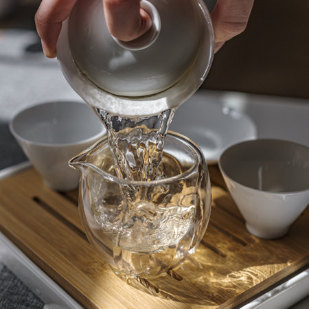 Engaging in Traditional Tea Pouring with Beautiful and Elegant Teacups and Accessories