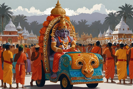 Rath Yatra Festival - Modern Image of People and India Temple Celebration, Space for Text