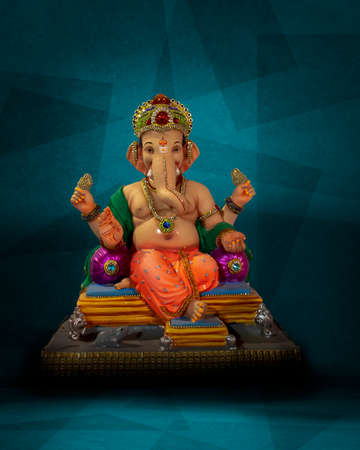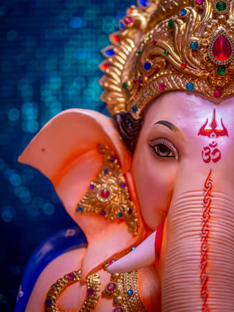 Hindu God Ganesha. Ganesha Idol on blue background.