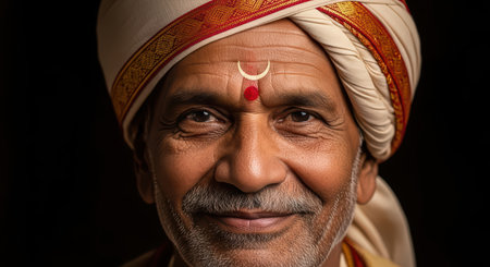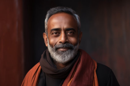Portrait of a bearded Indian man wearing a scarf and looking at the camera