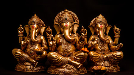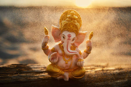 Beautiful figurine of Hindu god of wisdom, knowledge and new beginnings Ganesha against dark background.