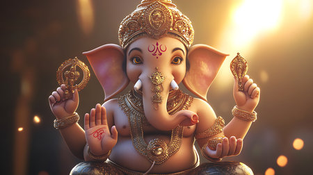 Ganesh jayanti lord ganesha on a brightly lit background. Generative Ai