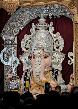 Huge idol of Lord Ganesh installed by Tulshibaug Mandal during Ganesh festival in Pune, India.